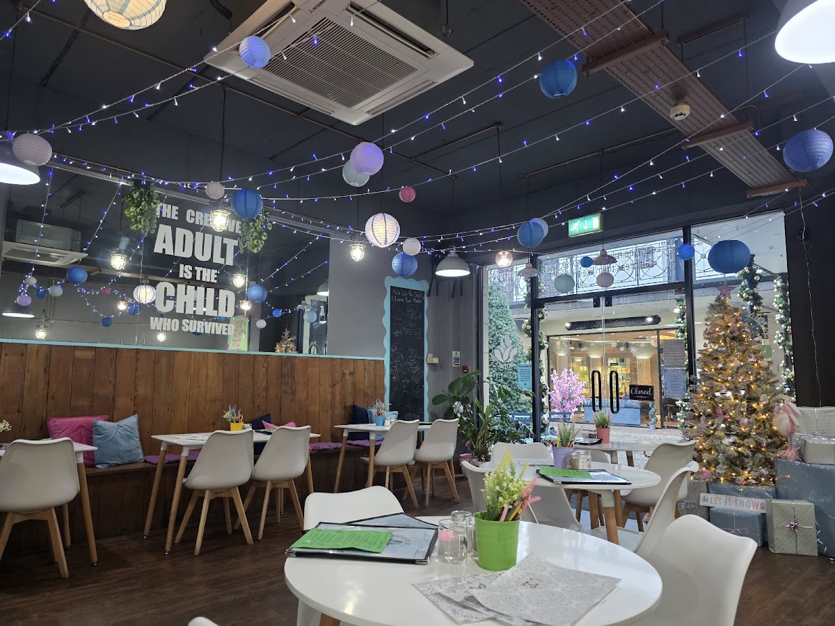 The menu plays into the artistic theme with whimsical mocktails such as The Shark and Pixie Dust, alongside a handful of light bites like homemade scones and vegan or gluten-free cake slices. It’s a spot where you can slowly sip a Watercolour Gin or an Abstract Aperol while watching your painting come to life or calmly flipping through sketching materials provided for spontaneous coloring sessions. The mix of art and drinks offers a well-rounded experience that feels both engaging and unpretentious.