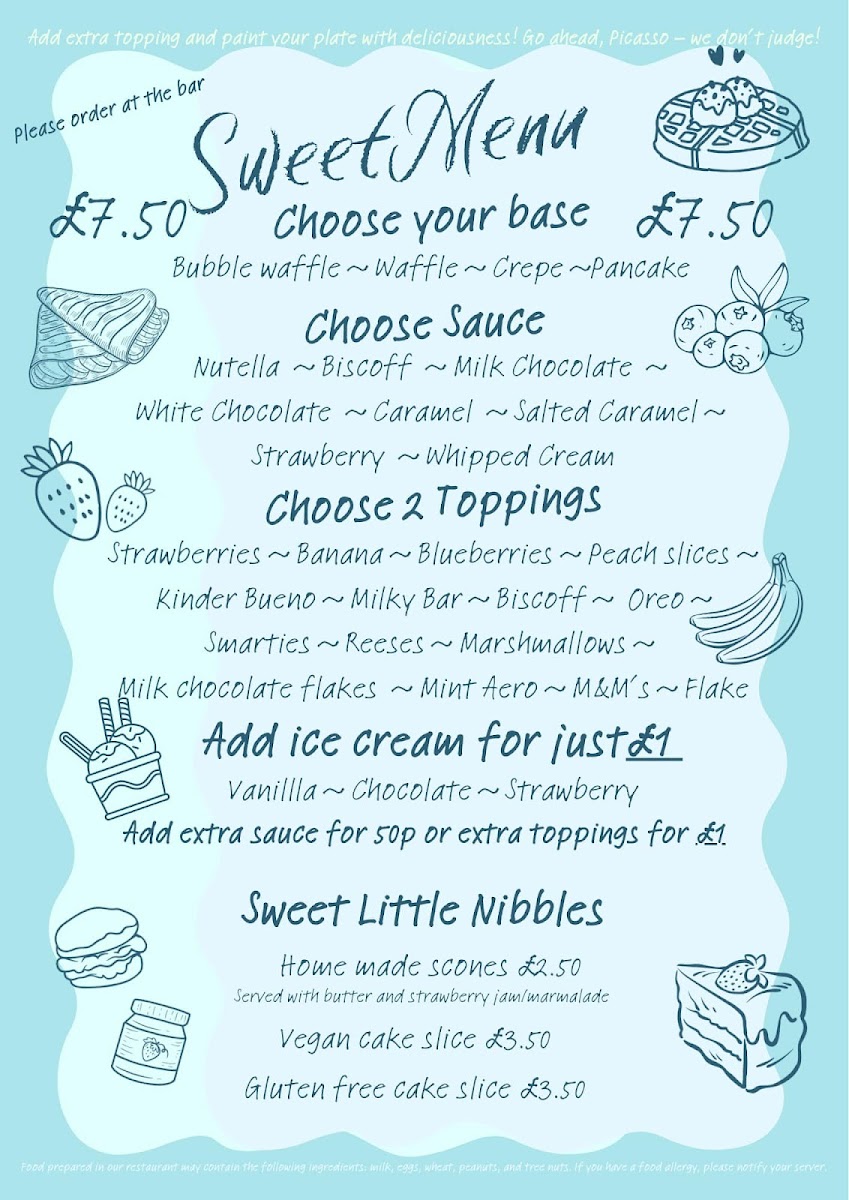 Sweet Little Nibbles provide lighter food options, including homemade scones, alongside vegan and gluten-free cake slices. These items offer suitable choices for those seeking snacks or light desserts.